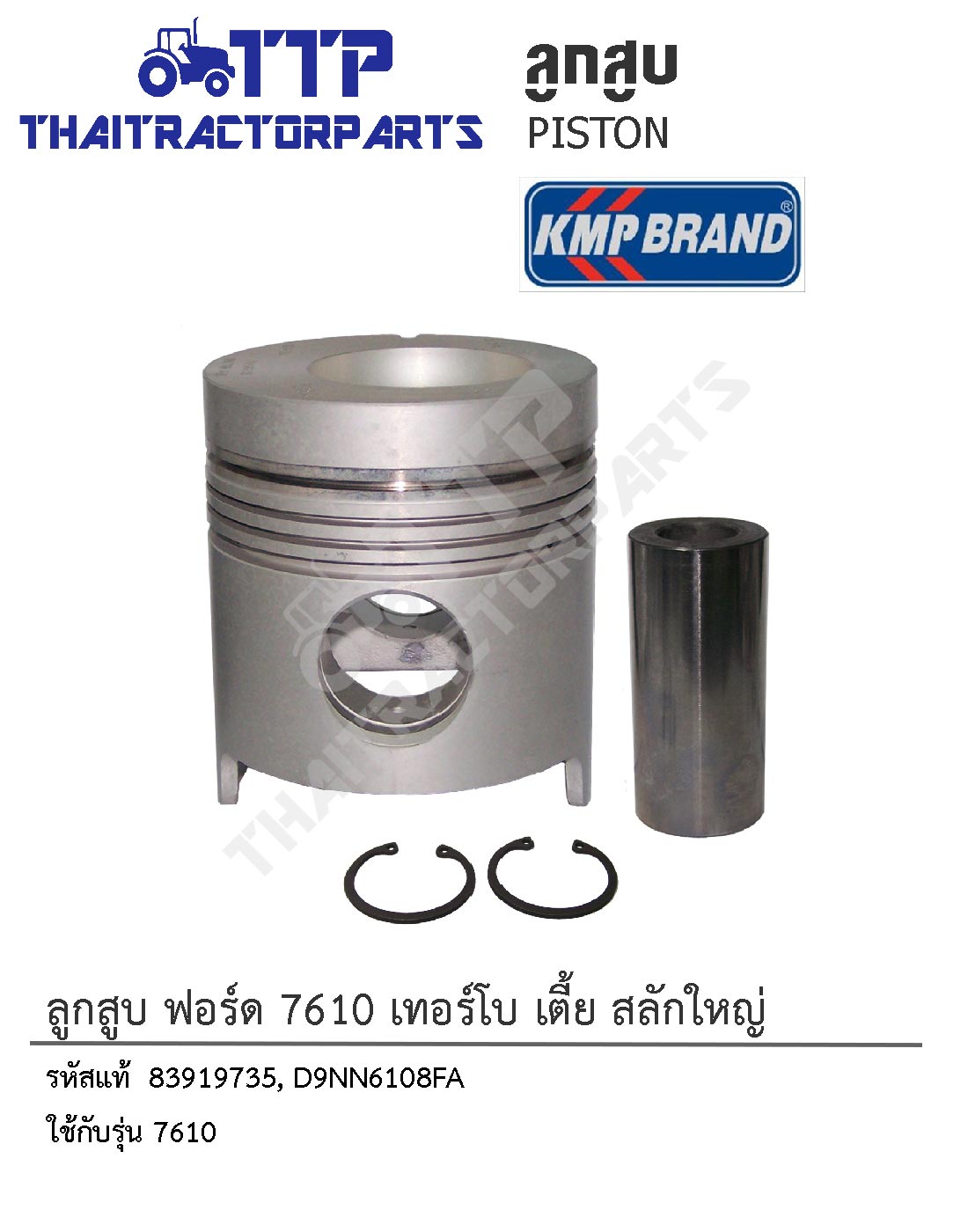 ตราสินค้า : KMP รหัสอ้างอิง Ref 1 : 83919735 รหัสอ้างอิง Ref 2 : D9NN6108FA ใช้ได้กับรุ่น : 7610