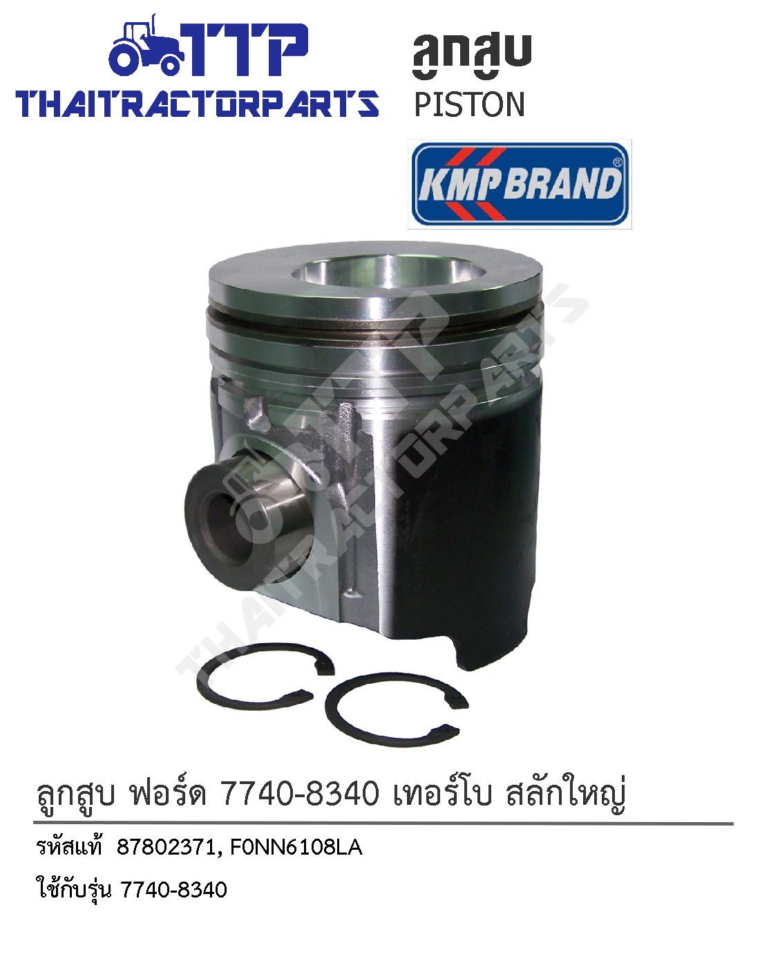 ตราสินค้า : KMP รหัสอ้างอิง Ref 1 : 87802371 รหัสอ้างอิง Ref 2 : F0NN6108LA ใช้ได้กับรุ่น : 7740-8340