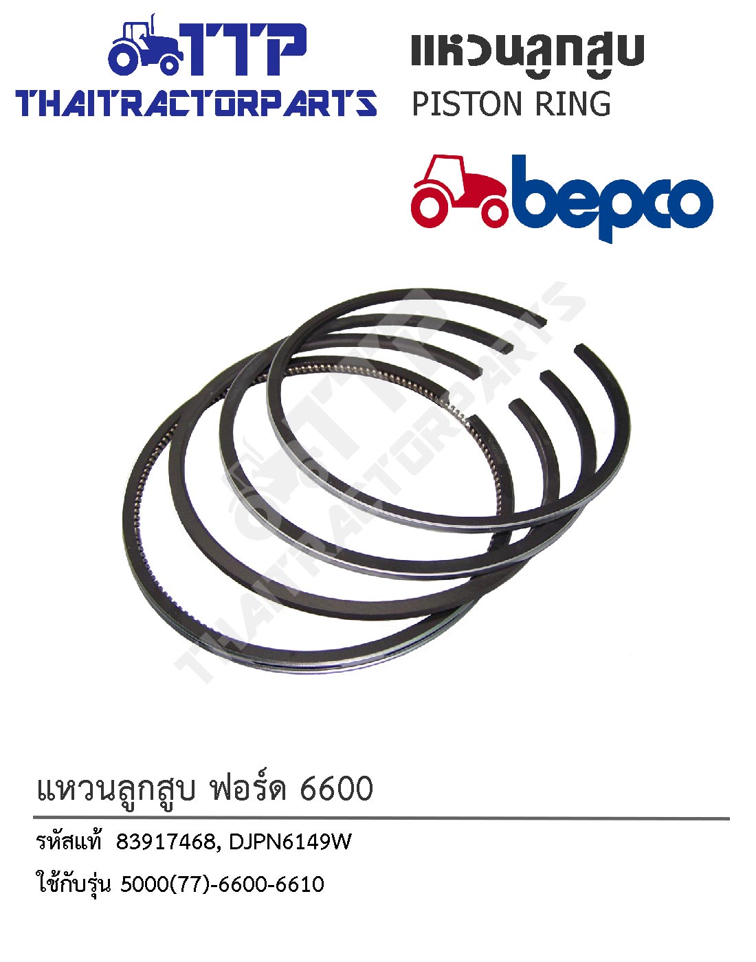 ตราสินค้า : BEPCO รหัสอ้างอิง Ref 1 : 83917468 รหัสอ้างอิง Ref 2 : DJPN6149W ใช้ได้กับรุ่น : 5000(77)-6600-6610